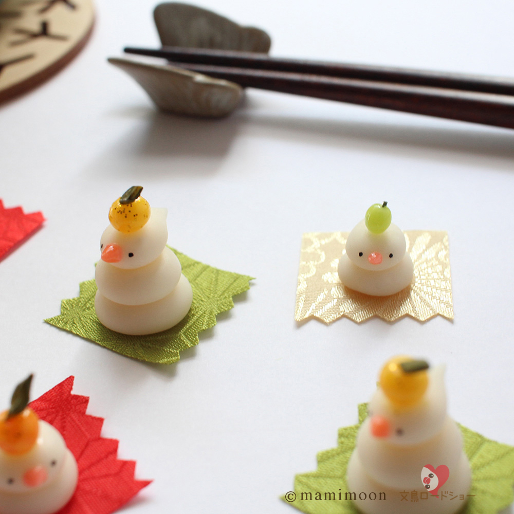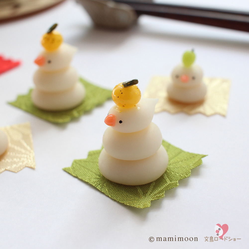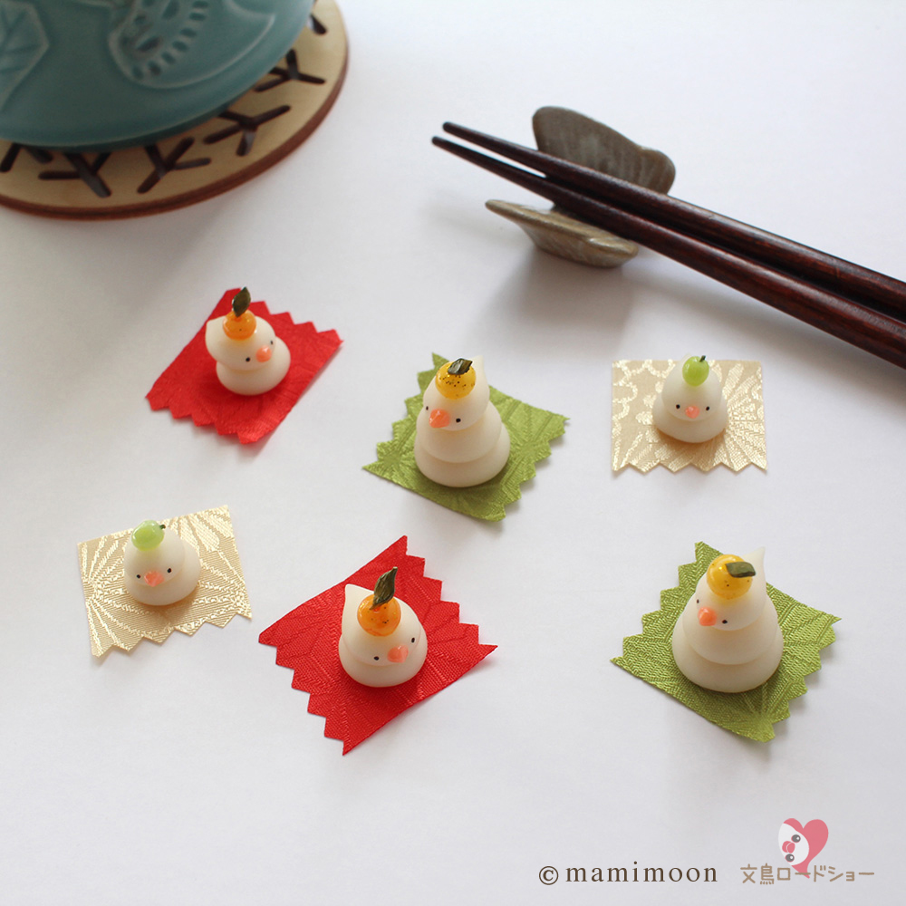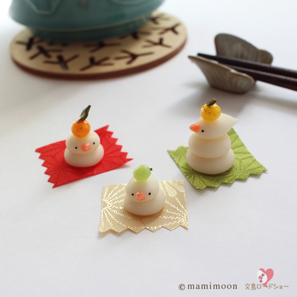 ただいま、mamimoonさん2025冬の新作、文鳥鏡餅2026作品公開中!