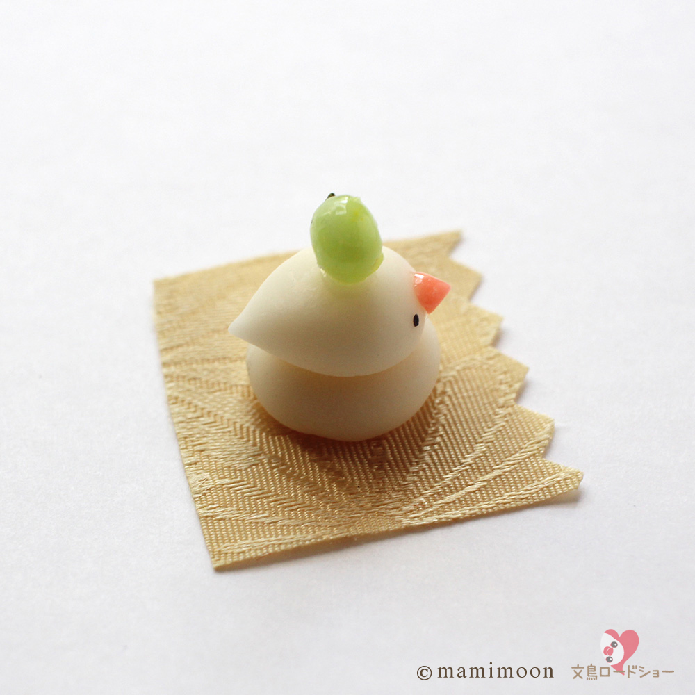 小さな点の目と小さなピンクのくちばし。このタイプの文鳥作品を作られる作家さんは他にもいらっしゃいますが…どこが違うかと言われても難しいのですが…mamimoonさんの文鳥のお顔は違う!お顔の完成度が高く、とてもかわいいのです。